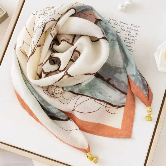Foulard Bijou Imprimé Bandana Floral – Écharpe chic avec embouts et chaîne