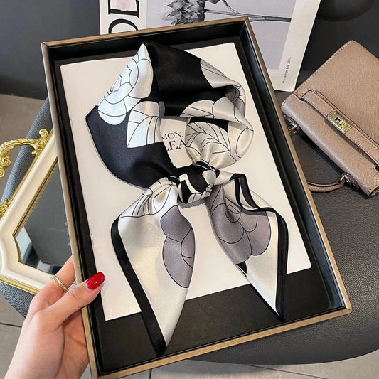 Carré 100% Soie Foulard carré en soie noir et blanc – Élégance légère et chic