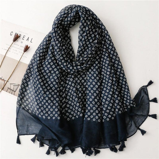 Foulard En Coton Bande Bleue et Blanche avec Motifs