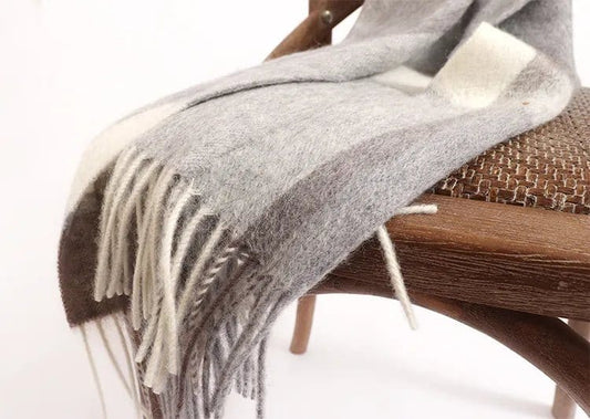 Echarpe en Laine Grise et Blanche de Luxe