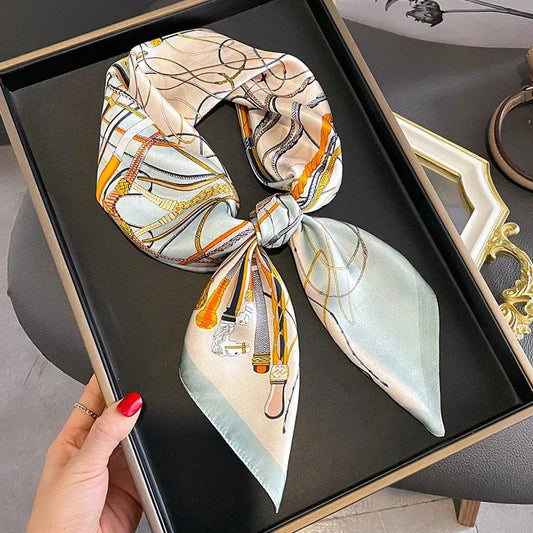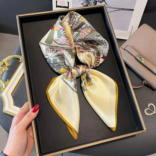 Carré 100% Soie Imprimé Floral Luxe – Écharpe Carré de Soie Haute Couture