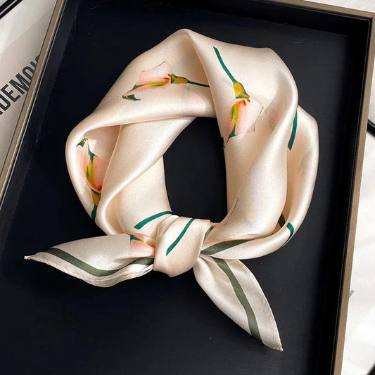 Carré 100% Soie Foulard Fleuri Femme Chic