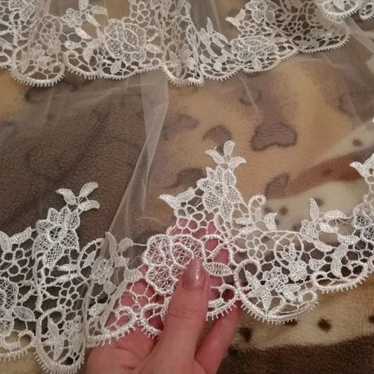 Châle Mariage Long Luxe avec Bord en Dentelle