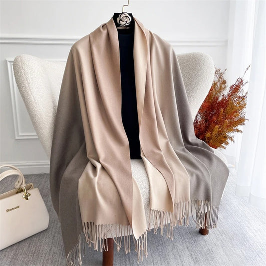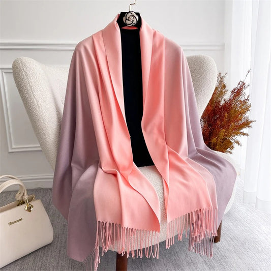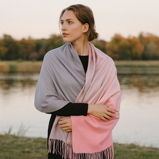 Echarpe Acrylique Gris-violacé Rose-Taupe Beige Dégradé Satiné Élégance Automne Hiver Fini Lisse et Franges