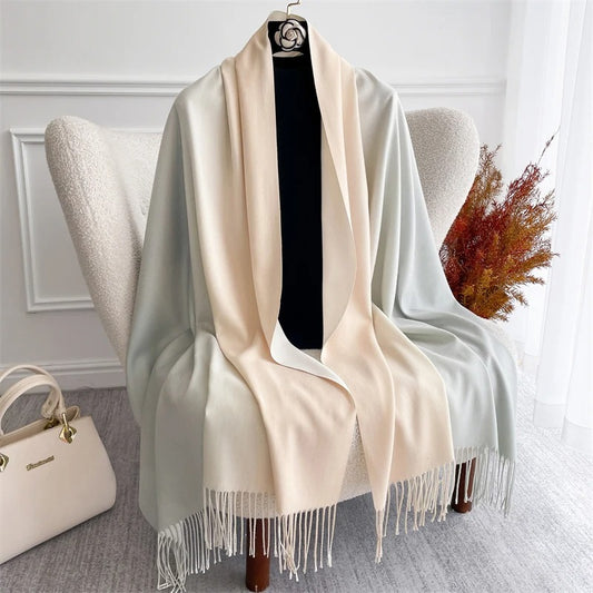 Echarpe Acrylique Dégradé Gris Bleu Pastel - Beige Rosé Crème 190 cm x 70 cm
