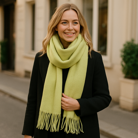 Echarpe Cachemire Citron Pastel - Vert Citron Pastel Doux et Velouté