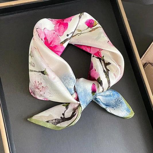 Carré 100% Soie - Carré de Soie foulard imprimé floral – chic et léger
