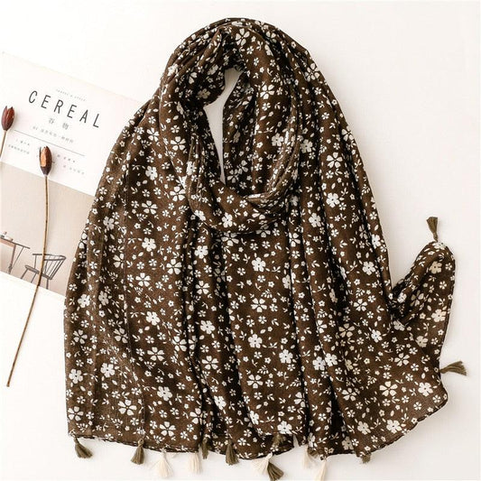Foulard bohème en coton Fleurs Blanches