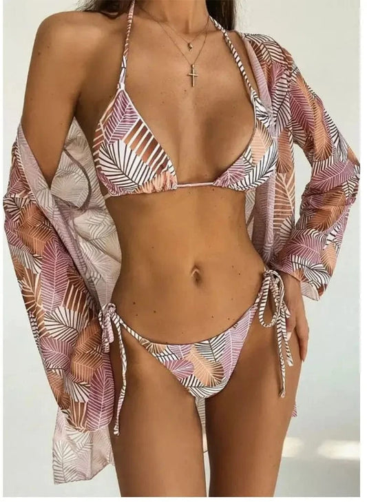 Ensemble Bikini Robe de Bain Tropical Chic 3 pièces